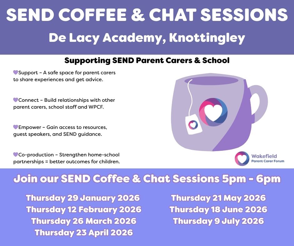 Join us for a Coffee and Chat session for parents of students with SEND. No booking is required, if you have any questions please email Mr M Mapplebeck at MapplebeckM@Delacyacademy.org.uk