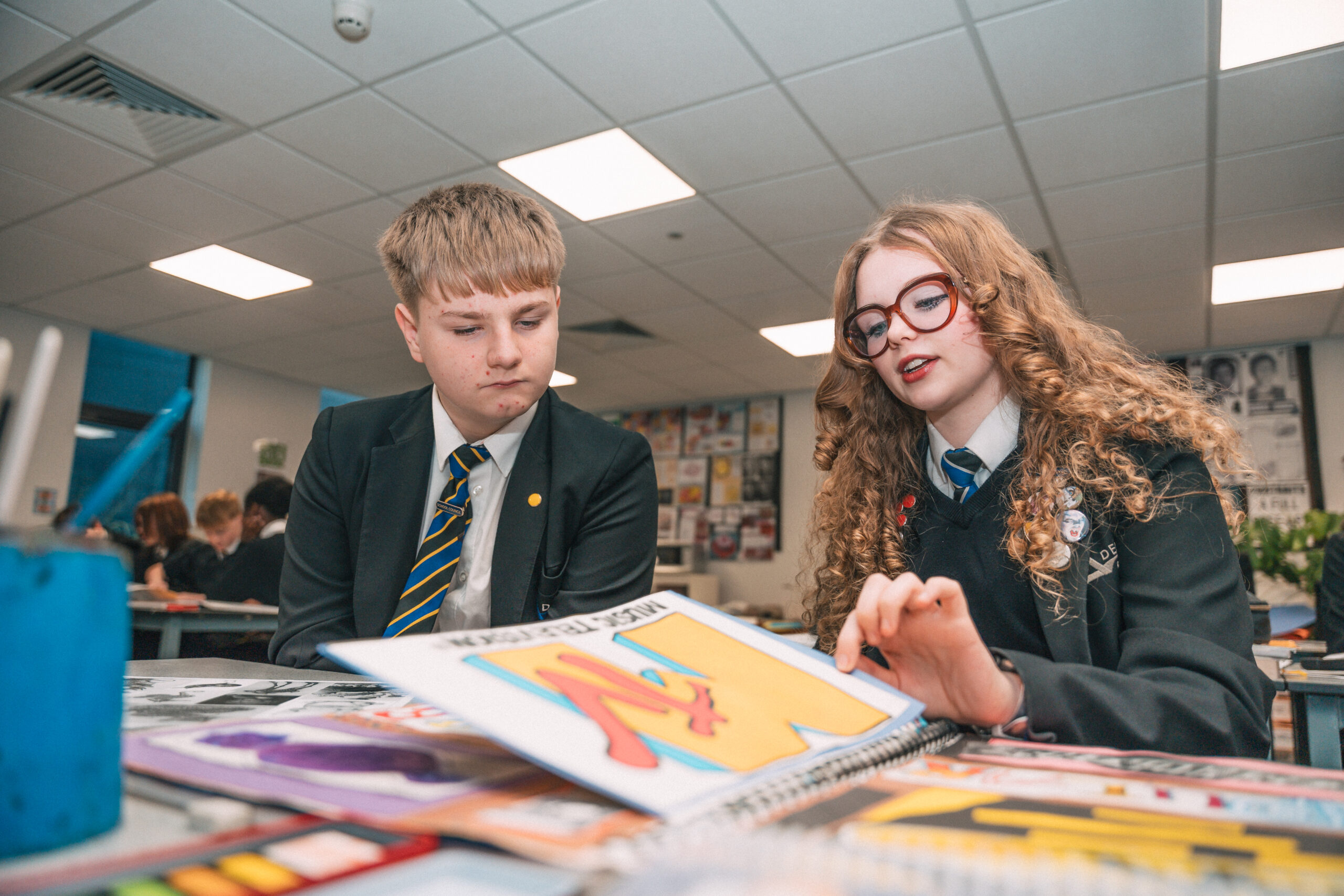 We believe that all students are entitled to a creative experience in the visual arts. Our Art and Design curriculum provides a broad and balanced range of opportunities to work with a wide range of media, to develop new skills, experience new technologies and gain new knowledge. In addition we link all of our learning and practical work to the world we live in, future career pathways and explain how Art and Design plays a vital role in all of our lives. Open ended projects allow students to use their imaginations, express their feelings and problem solve as they work towards quality outcomes. Our curriculum will ensure that all of our students will have the opportunity to: